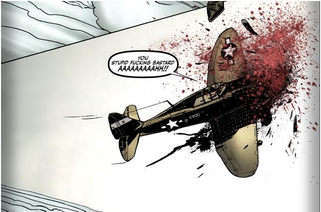 Mais uma contribuição de Garth Ennis! Honestamente, você poderia encher essa lista com várias contribuições de Ennis. Vamos fazer isso usando The Boys. Existem várias mortes horríveis que podemos citar da série: o presidente sendo atacado até a morte por wolverine, um chefe da mafia Rússia explodindo com um vibrador, etc – mas eu optei por pegar a morte contada na trama de World War II. Aqui, os superherois – mais analogias a Capitão America e Falcon – estão presentes em Battle of the Bulge. AS coisas não vão bem, e o analogo a Falcon decide que precisa tomar os céus. O que ele não fez por mais de dois segundos, antes de ser atingido por outro avião, por fim, sendo atropelado por um tanque Alemão.