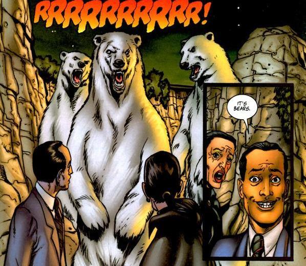Em um arco de Garth Ennis’ menos popular para The Punisher, o personagem é forçado a fugir de uma série de mafiosos depois de sofrer um ferimento de bala. Essa cena acontece em meio ao jardim zoológico onde ele corre enquanto elimina seus perseguidores, um por um. O primeiro é mergulhado em um tanque de piranhas até que apenas seu esqueleto sobre. O próximo é pego por uma serpente Python e finalmente, com apenas um executor e o chefe da máfia a esquerda, Frank Castle pula em uma janela e perfura um urso polar no rosto. Os ursos perturbados em meio a agressividade descontam a ação nos inimigos do Justiceiro. Ma Gnucci, o chefe da máfia, chega até a sobreviver, sem pernas, braços e cabelo. Mais tarde, um incêndio em sua casa terminaria o serviço.
