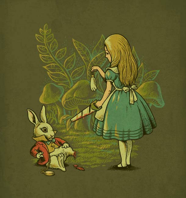 O ilustrador intitulado por ben6835 resolveu mostrar um lado menos encantado do universo infantil e criou essa série de ilustrações pra lá de sádicas! Cansado de ver o Snoopy deitado no sol em cima de sua casa? Acha que o País das Maravilhas de Alice tem um lado muito mais sombrio que o mostrado até então? Já encheu essa de que os heróis sempre vencem no final? Pois bem, é exatamente nessa pegada que o artista chega pra fazer um pouquinho de maldade. Não sobrou Batman nem Mario Bros pra salvar o dia. Nem o Pinóquio pra contar uma mentirinha. E você verá que o Homem de Lata é mesmo um cara sem coração!